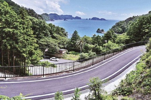 和歌山県が那智勝浦町の沿岸部に整備したサイクリングロード(和歌山県那智勝浦町二河で)